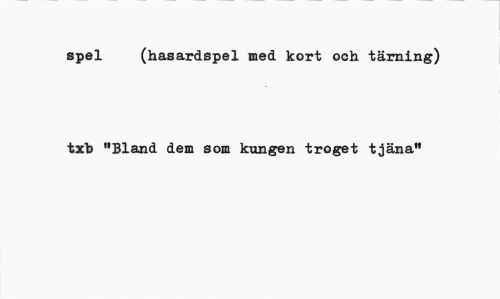 //// spel (hasardspel med kort och tärning) txfc "Bland dem som kungen troget tjäna" ////