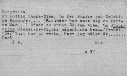 //// Kä.':p«Vl 3 a . //// Kn Lustig Kämpc-'3isa, Om Den otarse och Dristige namund er,. .. (Rfcnunder han wore sig en tättre Man.,,} Afwen en annan Nöj sam Wisa, Om hclma Mangelske-Pigor» någorlunda beskaffenhet." (Den1 lust har i*t wetta, hrrem jag hälst ar,., i... Uooå //// c s, 8:0 //// A ////