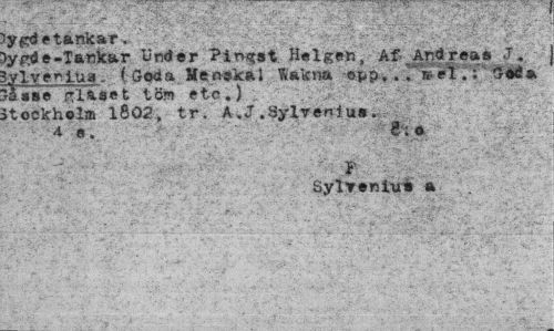 //// iygdetankar. r" ' //// >ygde-Tankar Under hingst Helgen, Af^Andreas .T. Sylvenius. {Goda Äen-skal ftakna Si* //// rå »se gliset ten etc.) »tockholm 1802, tr, A .J .Sylvenius. //// \ «. ¦'"fl*: ' //// Sylventtri a ////