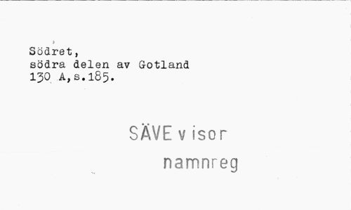 //// > //// Södret, //// södra delen av Gotland //// 130 .A, s.185. //// SÄVE v isor namnreg ////