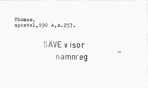 //// Thomas, //// apostel,190 A,s.257. //// SÄVE visor //// -HMPt //// namnreg ////