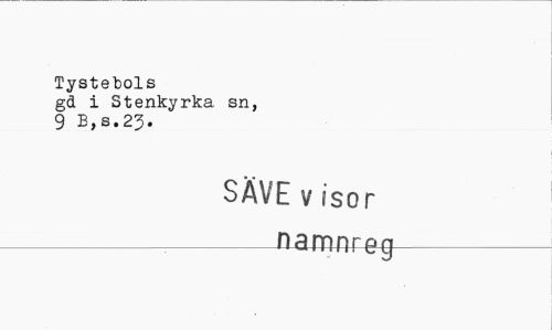 //// Tystebols //// gd i Stenkyrka, sn, 9 B,s.23. //// SÄVE v isor ////