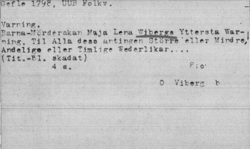 //// Varning. //// B arna ? c- r d e r sk ar- Fa i a Lera "'i berg» Yttersta War-nir>$, Til Alla dess artimen StorFfe 'eller Mindre,,1 Ande11 ge eller Timllfre Wederlikar.. . . (Tit.-fl. skadat) //// 4 8 . Pr O' //// 0 Viberg b ////