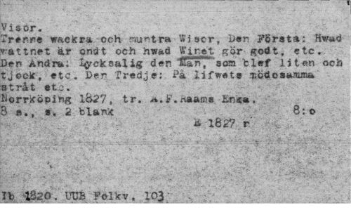 //// Visor. //// ?r*r,ne wackra och muntra 'Äjscr, I»«n Första: Hw»d rattnet är ond t och hwad Wjret gör godt. etc. Sen Andra, tyck sal ig den HarT," sosi hlef liten och tjock, etc. Den Tredje: På Xifwet» T.öäo»amaa stråt . //// Norrköping X&27» tr. <i.F.«aam« £nka. 3 a., s. 2 tlank 8:0 //// it 1827 r - //// /• s '.¦*•'¦' - • • • ' s- .V ' . ' • .. • ' „ . ; .. ¦¦?¦¦ • •: "' - //// ¦ " % ''^.i'" *; - . - . • .-'¦. ... , ¦ v-:-.1"" ¦, ' //// . UUB Fclkv. 103; ////