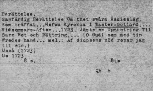 //// Perättelse. . . \ j , //// Sanfardig Berättelse Q® thet swåra Askleslag, 3o» träffat...Hefwa Kyrckia I . ... //// Mi*a<xmnars-Aft»n.. .1723. Jäjrte en Upmmtrrng Til Sann Bot och Bättring,.,. (O Gud l som med tln Wredes hand... mel.: Af diupsens nöd ropar jag til etc.) Uooå (1723) //// U» 1723 Ä //// W 6 ////