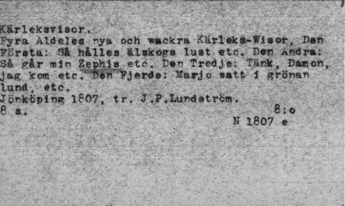 //// Carlekaviaor. //// Pyra Aldelee "ya och wackra Xärleka-Wiaor, Dsn företa: 3å hållea älskopa luat «tc. Dtn Andra: //// 3å pår min Zejghls. etc. Dan Tredje: Tänk, Damon, jag kom etc^Sfff^äaré,»: Marjo satt 1 grönan lund, *tc. //// lonköpirH? 1807, tr. J .P.tundström. ? a. 8;o //// N 1807 e //// vvv i //// "* . '•• ' ' •¦: • ".Va...; . .•¦ , - -i. 'V • T' - . ' . >¦.. ' ' //// ~ - .v^fs; • ' " / •/ t - , ////