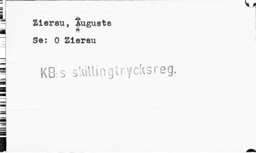 //// •ti j //// - Zierau, Augusta a //// = Se: O Zierau //// j KB.s skillingirycksreg. i //// i ////