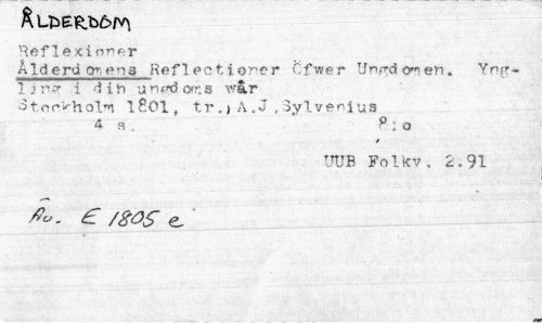 //// Reflexioner //// Aid era <y- ens Ref 1 ecfr i o;-cr Cfuver Un^donen. Yng-1 i ;t? i din ungdoms var 31 o o v-h o iSOl, tr.j A,J .Sylvenius //// 4 3, ' P: O //// / //// UUB Folkv, 2.91 //// Å. £ /gos e ////
