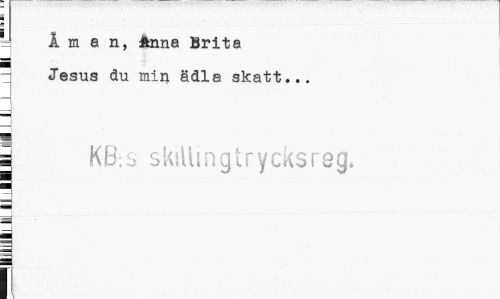 //// y Å m a n, ånna Brita //// q Jesus du min ädla skatt... //// \ KB:S skillingtrycksreg. I ////