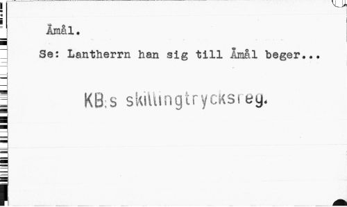 //// Åmål. //// i //// I Se: Lantherrn han sig till Åmål beger... //// j KB;s skillingtrycksreg, //// B ¦ ////
