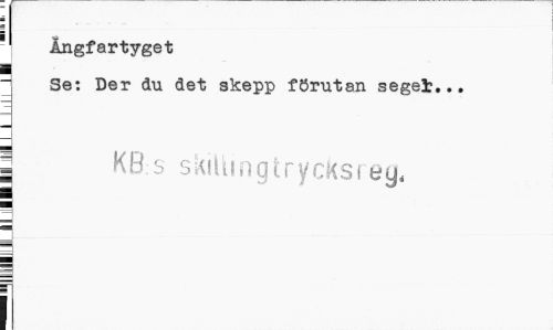 //// 1 Ängfartyget i //// " Se: Der du det skepp förutan segel... //// i KB:S skilling trycks reg, ¦ //// f ////