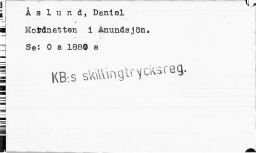 //// ; Åslund, Daniel //// 1 Mordnatten i Ånundsjön. //// i Se: 0 a 1880 a //// 1 KB:S s^ngtn^sreg. ////