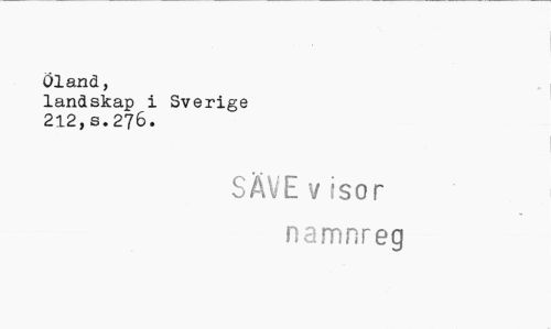 //// Öland, //// landskap i Sverige 212, s.276. //// SÅVE v isor namnreg ////