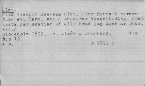 //// Llet. //// T .'"« visor:/ äwerska ^ let. /i>r farr.s i rörd er» förr ett -ana, etc./ örusures Faworit-oårg. /Det oasta jag sscatlar af allt hcad jag äger är 3rus, etc y //// dtocsholrr. l£l7, tr. i-lrnér a. örarterg. o //// K; o 12. //// a 9. s l8l> j ////