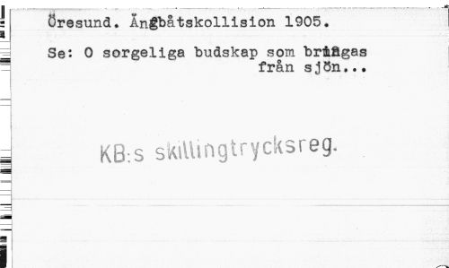 //// ; Öresund. Ångbåtskollision 1905. //// m //// g Se*. 0 sorgeliga budskap som "bråfigas //// från s j ön... //// KB-.s skilliftgtrycksreg* ////