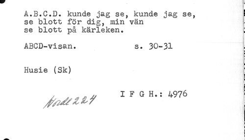 //// A.js.u.u. Kiunae jéig se, Kunae jag se, //// se blott för dig, min vän //// se blott på kärleken. //// ABCD-visan. s. 30-31 //// Husie (Sk) } //// ^^ l?3H.= 4976 I //// ^^^ t ////