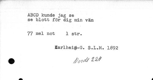 //// ABCD kunde jag se //// se blott för dig min vän //// ) //// 77 mel not 1 str. //// Earlhei%-G. S.L.M. 1892 //// * * a? ////