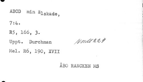 //// ABCD minäisnad ; //// 7:4. //// R5, 166, 3. //// Uppt. Dur c hman ^^^ ^ ^ //// Mel. R6, 190, XVII ////