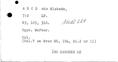 //// ABCD min älskade, //// # 7:2 LF. //// , R3, 165, 316. ^ //// Uppt. Wefvar. //// Mel. //// (Mel.? se även R6, 194, bl.2 nr 11) ////