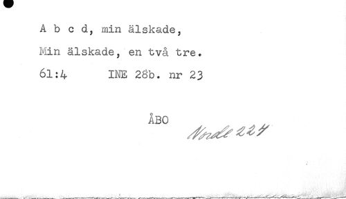 //// Abcd, min älskade, //// Min älskade, en två tre. //// 61:4 INE 28b. nr 23 //// ÅBO ////