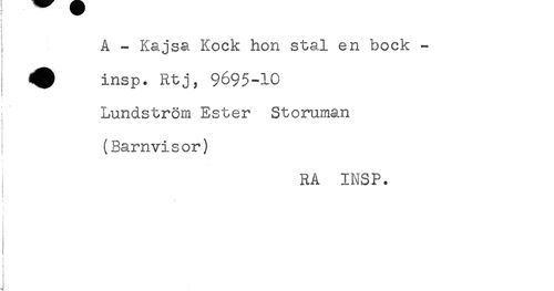 //// A - Kajsa Kock hon stal en bock - //// f //// ^ insp. Rtj, 9695-10 //// i //// Lundström Ester Storuman //// ! (Barnvisor) //// RA INSP. //// i ////