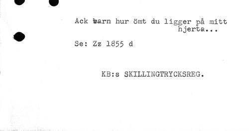 //// Ack barn hur ömt du ligger på mitt //// hjerta... //// Se: Zz 185$ d //// KB:s SKILLINGTRYCKSREG. ////