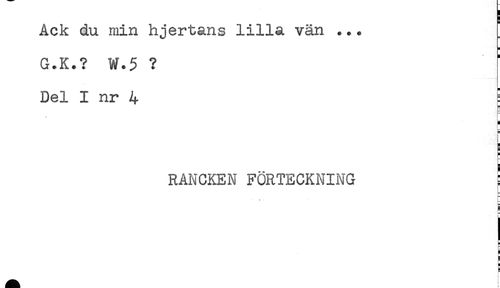 //// ACK au mm njertans mia van ... //// H //// G.K.? W.5 ? //// Del I nr 4 [ //// i //// i //// ) //// RANCKEN FÖRTECKNING ! ////