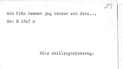 //// / //// Ack från hemmet jag tänker att fara... //// Se: E 1847 n //// KB:s skillingtrycksreg. ////