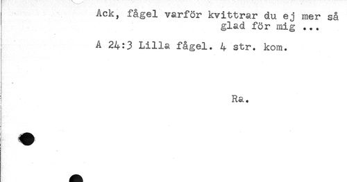 //// , ---* -- - - - v V ^^ ^ j Od //// glad för mig ... //// A 24:3 Lilla fågel. 4 str. kom. //// Ra, ////