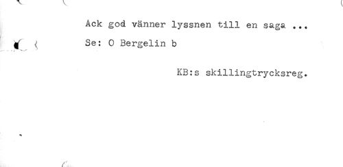 //// Ack god vänner lyssnen till en saga ... //// ^ { Se: 0 Bergelin b //// . - . ^^ //// KB:s skillingtrycksreg. ////