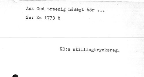 //// Ack Gud treenig nådigt hör ... //// Se: Zz 1773 b //// KB:s skillingtrycksreg. ////