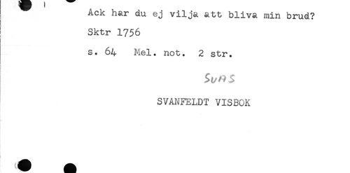 //// ---* ^ ^ ^ v 33. iilj.il tJJL U.U ; //// ! Sktr 1756 //// s. 64 Mel. not. 2 str. //// } //// SVANFELDT VISBOK ////