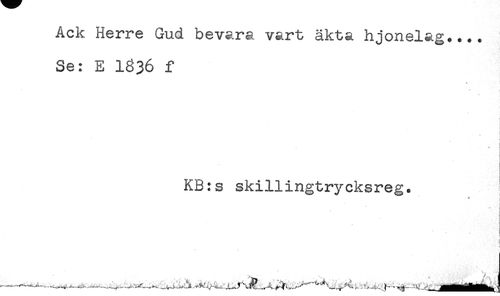 //// Ack Herre Gud bevara vart äkta hjonelag.... //// Se: E I836 f //// i //// i //// . //// i //// KB?s skillingtrycksreg. //// * i //// * //// ! //// -... ////