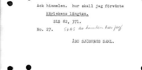 //// ! Kärlekens längt&n. //// SLS 82, 371. //// No. 27. //// ÅBO SJÖBERGS SmL. ////