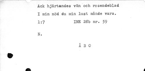//// I min nöd du min lust månde vara. //// 4 //// 1:7 INE 28b nr. 59 //// N. //// ÅBO //// ** //// - ////