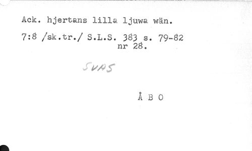 //// Ack. hjertans lilla ljuwa wän. //// 7:8 /sk.tr./ S.L.S. 383 s. 79-82 //// nr 28. //// ÅBO ////