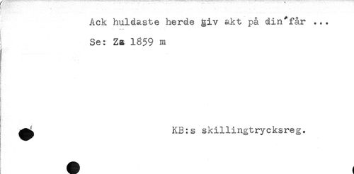 //// Ack huldaste herde giv akt på din*får ... //// * //// Se: Zz 1859 m //// ) //// ! //// i //// F ' //// t //// ^^ KB:s skillingtrycksreg. ////