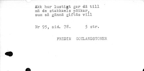 //// mä de stakkaels päikar, //// sum så gännä giftas vill //// Nr 95, sid. 5 str. //// FREDIN GCTLANDSTONER ////