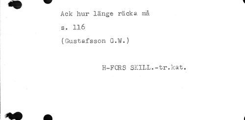//// Ack hur länge räcka ma //// s. 116 //// . //// (Gustafsson G.W.) //// H-FCRS SKILL.-tr.kat. //// t ////