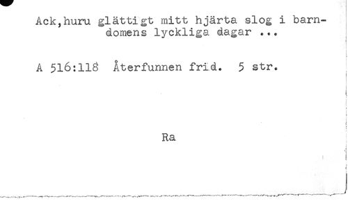 //// ACK,nuru gJLaLLigL mii,^ njarua A ucurii- //// domens lyckliga dagar ... //// A 516:118 Återfunnen frid. 5 str. //// f //// i //// t //// i //// j //// Ra //// * //// f //// i //// t : //// j //// ____---t"--- - ////
