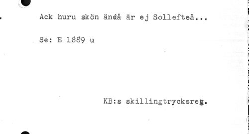 //// Ack huru skön ändå är ej Sollefteå... L //// L //// < //// Se: E 1889 u //// H //// - //// r //// ! //// i //// a //// 5 //// E //// [ //// ! //// < //// KB:s skillingtrycksreg. //// a //// É //// i ////