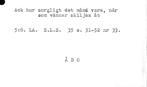 //// Ack hur sorgligt det mand vara, när //// som vänner skiljas åt //// : //// 5:6. LA. S.L.S. 35 s. 51-52 nr 33- //// ! //// i //// j //// : //// ! //// ÅBO ////