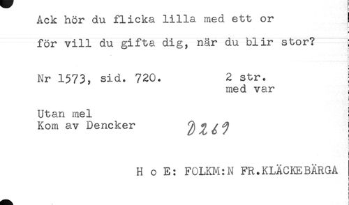 //// RCH Iior U.U. J-J- JL U K.<3. JL JL JL JLd iilCUL c? u ty -u? JL E //// för vill du gifta dig, när du blir stor? ; //// t //// < //// i //// Nr 1573, sid. 720. 2 str. //// med var j //// Utan mel //// Kom av Dencker 0 J^ ^ ^ //// ! //// H o E: F0LKM: