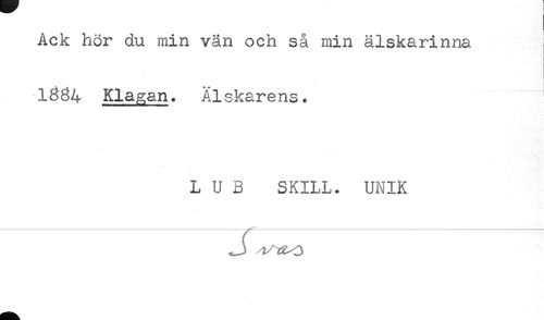 //// Ack hör du min van och så min älskarinna ! //// i //// 1384 Klagan. Älskarens. //// L U B SKILL. UNIK ////