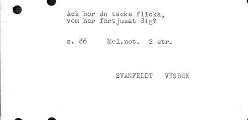 //// ^ Ack hör du täcka flicka, //// vem har förtjusat dig? //// s. 86 Mel.not. 2 str. //// SVANFELDT VISBOK ////