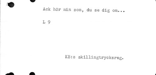 //// Ack hör min son, du se dig om... //// ' L 9 //// t //// { //// KB:s skillingtrycksreg. ////