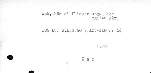 //// Ack, hör ni flickor unga, som //// ogifta går, //// 104 KU. S.L.S.40 s.108-110 nr 48 //// * //// - //// 3 ////