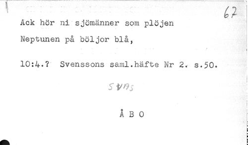 //// Ack hör nirsjömänner som plöjen //// Neptunen på böljor blå, //// , .. - . - ' . ... / //// ! //// ) //// 10:4*? Svenssons saml.häfte Nr 2. s.50. //// ! //// : //// ÅBO //// - //// 5 //// i ////