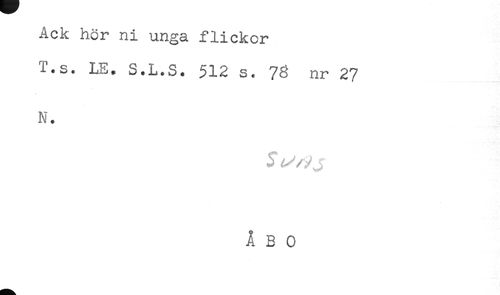 //// Ack hör ni unga flickor //// T.s. LE. S.L.S. 512 s. 76 nr 27 //// N. ////