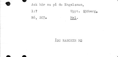 //// 1:? Uppt. Sjöberg, //// R6, 207^ Mel. //// ÅBO RANCKEN I4S //// t ////